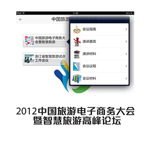 當(dāng)我收到精美的邀請(qǐng)函,頓時(shí)眼前一亮,映入眼簾唯有一個(gè)二維碼,懷著好奇掏出手機(jī)輕輕一掃,名為“2012中國(guó)旅游電子商務(wù)大會(huì)移動(dòng)秘書”的客戶端已然下載到手機(jī)中。打開(kāi)客戶端使用片刻,便贊嘆這款A(yù)PP名副其實(shí),無(wú)愧于移動(dòng)秘書這一稱號(hào)。APP中各地的旅游資訊、當(dāng)?shù)孛谰?,自?dòng)且實(shí)時(shí)地聚合為一個(gè)個(gè)資源,可以方便地訂閱,就如同貼身的秘書幫你收集好了需要翻閱的各種資料,省去到處上網(wǎng)搜尋的煩惱,頓覺(jué)貼心。使用下去越發(fā)感覺(jué)到此款A(yù)PP的貼心與方便,每位參會(huì)專家的簡(jiǎn)介、演講時(shí)間都整理在列,受邀者到達(dá)場(chǎng)館的最優(yōu)行程,會(huì)議場(chǎng)館附近的餐廳、酒店都已然預(yù)置在客戶端中,方便大家參考、選擇......總而言之,這款A(yù)PP無(wú)處不讓人感覺(jué)到貼心與便捷。