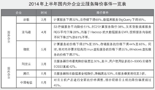 隨著云服務(wù)提供商的服務(wù)不斷完善,云計(jì)算市場呈現(xiàn)出群雄割據(jù)的態(tài)勢,價(jià)格戰(zhàn)則成為云計(jì)算巨頭競爭的重要手段。上半年,谷歌、亞馬遜、微軟等企業(yè)相繼大幅降低云服務(wù)價(jià)格,搶奪公有云服務(wù)市場。谷歌在3月將其云計(jì)算服務(wù)下調(diào)32%,亞馬遜云服務(wù)價(jià)格下降10%至65%不等,微軟的云存儲價(jià)格降幅最高達(dá)到65%。
