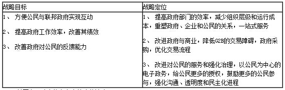 美國的電子政府戰(zhàn)略表明,改造“聯(lián)邦政府機(jī)構(gòu)體系結(jié)構(gòu)”是實(shí)現(xiàn)其總體目標(biāo)的關(guān)鍵,實(shí)施電子政府的實(shí)質(zhì)是促進(jìn)政府改革、提高政務(wù)效率、改善服務(wù)質(zhì)量、完善職能、降低成本。因?yàn)樵陔娮诱@個(gè)概念中,“電子”只是工具,“政務(wù)”才是目標(biāo)。