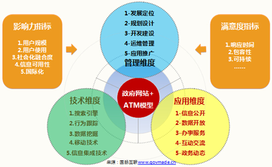 大數(shù)據(jù)、云計(jì)算、物聯(lián)網(wǎng)與移動(dòng)互聯(lián)網(wǎng)的發(fā)展,使互聯(lián)網(wǎng)的生態(tài)體系與運(yùn)行模式得以重構(gòu),而以人為本,開放包容、全面協(xié)調(diào)和可持續(xù)發(fā)展仍然是信息社會(huì)的基本要求;政府網(wǎng)站如何適應(yīng)新形勢(shì)、新任務(wù)、新要求,支撐政府部門轉(zhuǎn)變工作方式,創(chuàng)新服務(wù)模式,提升管理和服務(wù)效能,是信息時(shí)代下的重要課題。國(guó)脈互聯(lián)提出的“政府網(wǎng)站+”理念表明,信息社會(huì)下的政府網(wǎng)站要融合生態(tài)系統(tǒng),以“跨界、創(chuàng)新、融合、分享”的思路開展建設(shè)和管理,而“十三五時(shí)期政府網(wǎng)站發(fā)展評(píng)估ATM模型”的提出期望能夠指引中國(guó)政府網(wǎng)站未來運(yùn)營(yíng)趨勢(shì),引導(dǎo)中國(guó)政府網(wǎng)站良性發(fā)展。