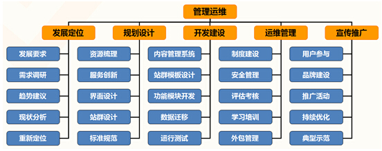 管理運(yùn)維是政府網(wǎng)站發(fā)展建設(shè)的基礎(chǔ),是指導(dǎo)網(wǎng)站建設(shè)和運(yùn)營(yíng),全面協(xié)調(diào)網(wǎng)站優(yōu)勢(shì)資源,保證網(wǎng)站持續(xù)發(fā)展的核心手段,包括發(fā)展定位、規(guī)劃設(shè)計(jì)、開發(fā)建設(shè)、運(yùn)維管理、宣傳推廣5個(gè)要素。