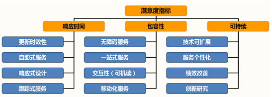 滿意度是衡量政府網(wǎng)站對(duì)用戶的服務(wù)效果的重要指標(biāo),是用戶需求被充分滿足的重要體現(xiàn),要達(dá)到滿意度的目標(biāo),政府網(wǎng)站必須從“響應(yīng)時(shí)間、包容性、可持續(xù)”等三個(gè)方面著手開展建設(shè)。