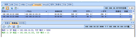我們定位192.168.10.22這個IP,然后查看TCP會話選項。如下圖: