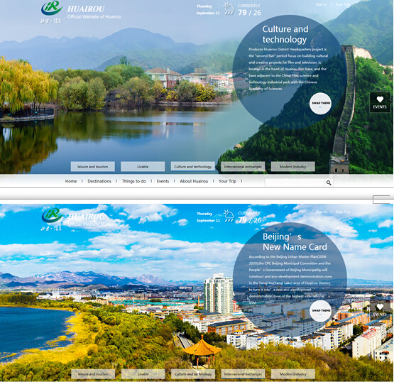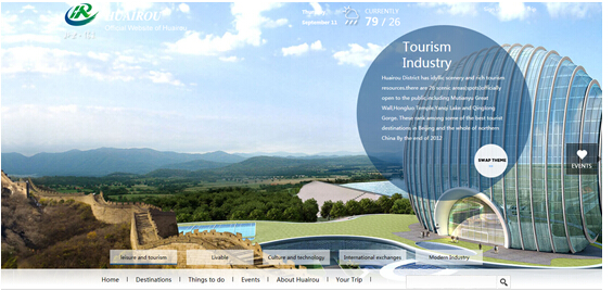 新版英文網(wǎng)站中不僅介紹了懷柔的旅游景點(diǎn)和重大事件,還對(duì)懷柔的各種特色進(jìn)行了推介,如斂巧飯、紅螺寺廟會(huì)、滿族風(fēng)情節(jié)、懷北紅肖梨等,網(wǎng)站采用開(kāi)放式的整體設(shè)計(jì),大量利用圖片和立體效果展現(xiàn),更加直觀的宣傳懷柔。無(wú)論是來(lái)懷旅游、投資、生活的境外人士都可以通過(guò)政府英文門(mén)戶網(wǎng)站了解懷柔的最新資訊、地方民俗、風(fēng)土人情、特色文化、投資環(huán)境、優(yōu)惠政策等各方面內(nèi)容。