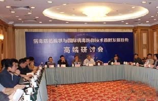 這是在,國家863計劃“基于程序行為自主分析判斷的實時防護技術(shù)”課題組召開的“病毒防范現(xiàn)狀與國際病毒防御技術(shù)最新發(fā)展趨勢”高端研討會上的一幕。