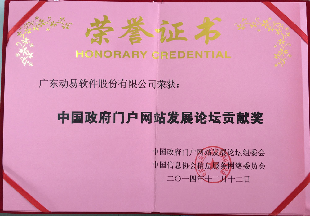 在論壇上,廣東動易軟件股份有限公司榮獲大會頒發(fā)“中國政府門戶網站發(fā)展論壇貢獻獎”,同時動易還憑借優(yōu)秀的移動端自適應解決方案獲得了大會頒發(fā)的“2014政府網站新技術應用優(yōu)秀案例獎”,充分肯定了在移動互聯(lián)網時代,動易在政府網站建設領域做出的突出貢獻。這份肯定進一步鞏固了動易在移動互聯(lián)網時代網站建設領域的研究者與引領者的地位。