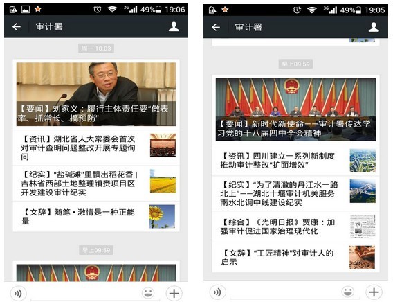 審計(jì)署政務(wù)微信平臺(tái)將不定期向客戶端推送微信。微信欄目包括要聞、資訊、紀(jì)實(shí)、時(shí)評(píng)、綜合、風(fēng)采等。歡迎關(guān)注!
