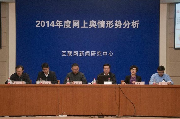 今日(25日)下午,中國互聯(lián)網(wǎng)新聞研究中心在京主辦“2014年度網(wǎng)上輿情形勢分析”發(fā)布會。中國互聯(lián)網(wǎng)新聞研究中心副主任華清、新華網(wǎng)輿情監(jiān)測分析中心主任段賽民、人民網(wǎng)輿情監(jiān)測室秘書長祝華新、互聯(lián)網(wǎng)實(shí)驗(yàn)室主任方興東、清華大學(xué)新聞與傳播學(xué)院教授沈陽和中國傳媒大學(xué)互聯(lián)網(wǎng)信息研究院院長助理李未檸等專家受邀在發(fā)布會上分別從不同角度發(fā)布報(bào)告。來自全國主流媒體的30多位記者和部分自媒體負(fù)責(zé)人參加了此次發(fā)布會。