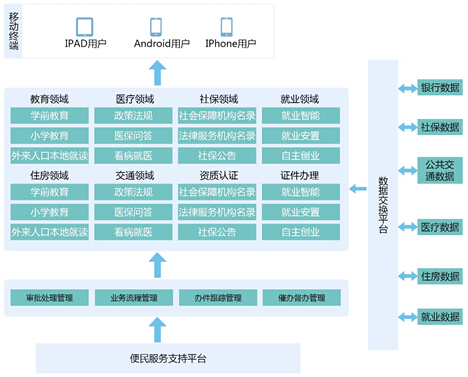 移動便民服務APP是以公共服務領域內容建設為核心的移動應用,整合了公共服務領域信息發(fā)布、政策法規(guī)查詢、辦事指南、辦理進度和結果查詢、辦事地圖服務、咨詢和投訴、消息通知等多種服務功能,與政府門戶網(wǎng)站信息數(shù)據(jù)實現(xiàn)無縫對接,將政務服務送到企業(yè)和個人手邊。