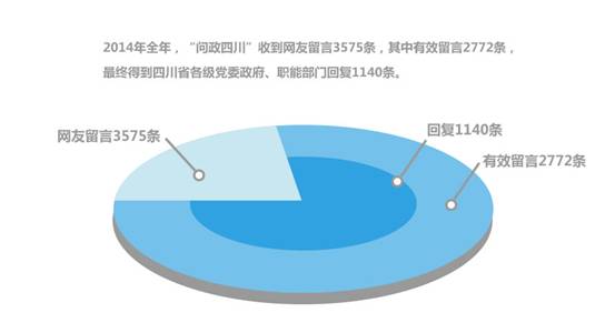 2014年,升級后的“問政四川”(http://wz.scdaily.cn/)平臺充分發(fā)揮“橋梁”作用,為四川各級黨政職能部門與廣大網(wǎng)民之間的良性互動提供了平臺。網(wǎng)友們表達呼聲、反映問題,黨政職能部門積極傾聽、解決問題。據(jù)統(tǒng)計,2014年全年“問政四川”收到網(wǎng)友留言3575條,其中有效留言2772條,最終得到四川省各級黨委政府、職能部門回復1140條。