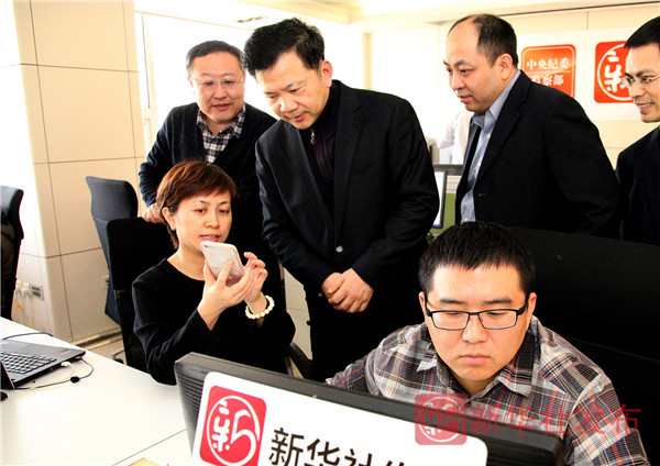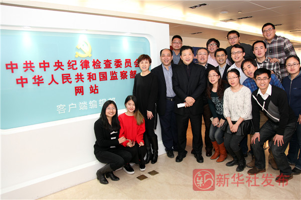 ↑1月11日,新華社副社長慎海雄到新華社新媒體中心,檢查中央紀委監(jiān)察部網(wǎng)站客戶端升級改版準備工作。中央紀委監(jiān)察部網(wǎng)站客戶端由新華社新媒體中心承建,經新華社技術局等各部門通力協(xié)作,于今年元旦上線試運行,廣受各界好評。