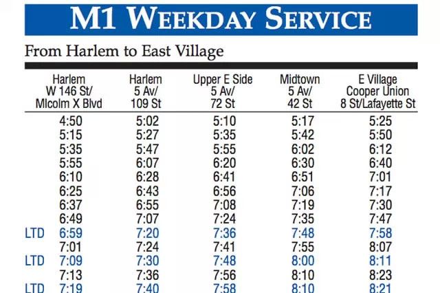 當(dāng)然,這個(gè)網(wǎng)站提供的不止是延誤信息,你還可以在上面查到每一班地鐵和每一路公交車每天到達(dá)每一個(gè)站的時(shí)間。比如,下面就是M1路公交車的運(yùn)行時(shí)刻表。