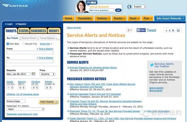 這是美國(guó)國(guó)家鐵路公司Amtrak的網(wǎng)站,上面同樣可以快速地查到各項(xiàng)信息。其他鐵路系統(tǒng)的類似信息也都可以在各自網(wǎng)站上找到。[page]