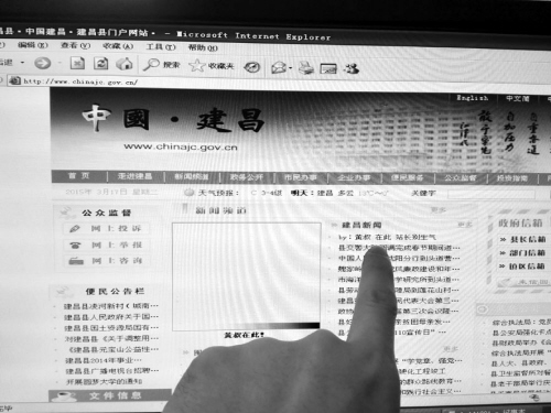 接到網(wǎng)友的爆料后,記者第一時(shí)間登錄到建昌縣門戶網(wǎng)“中國(guó)建昌”,在網(wǎng)站首頁(yè)發(fā)現(xiàn)了“黃叔在此”和“站長(zhǎng)別生氣”的字樣。點(diǎn)擊進(jìn)入后,對(duì)方的留言是:我是黃叔,進(jìn)來(lái)看看就走了。