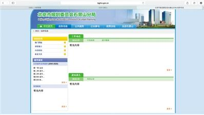 北京市規(guī)劃委員會石景山分局官網(wǎng),“政務(wù)信息”欄下三個版塊均顯示“暫無內(nèi)容”。