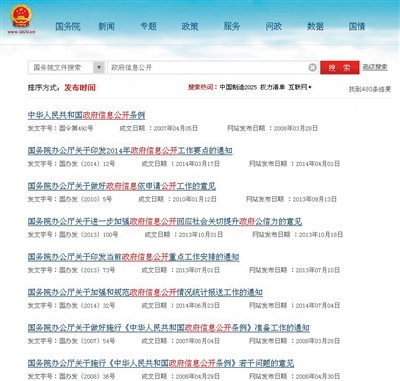 中華人民共和國(guó)中央人民政府網(wǎng)站上顯示的有關(guān)政府信息公開(kāi)的文件。