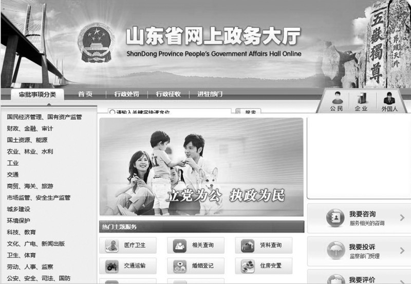 記者了解到,目前山東省網(wǎng)上政務(wù)大廳網(wǎng)站已經(jīng)可以登錄查看,共29個部門進駐,目前網(wǎng)站錄入的辦事事項共758項,今后還有26個部門將陸續(xù)進駐。