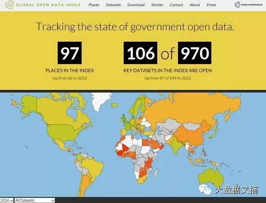 開放數(shù)據(jù)指數(shù)2014顯示全球各國和地區(qū)政府開放關(guān)鍵數(shù)據(jù)集的進(jìn)展緩慢
