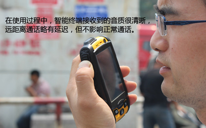 在使用過程中,智能終端接收到的音質(zhì)很清晰,遠距離通話略有延遲,但不影響正常通話。在嘈雜的環(huán)境下可以調(diào)大音量,喇叭進行了聲學處理,通話依舊清楚無毛刺。