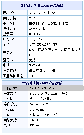 智能終端及智能對講機產(chǎn)品參數(shù)