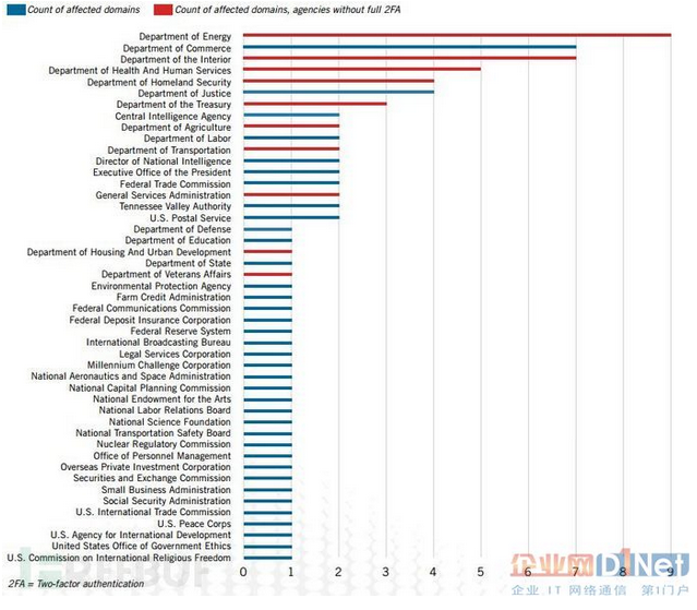根據(jù)統(tǒng)計(jì),有89個(gè)域名,47個(gè)美國政府機(jī)構(gòu)的用戶名密碼可能被泄露。2015年初,這些機(jī)構(gòu)中的12個(gè),包括美國國務(wù)院和能源部,都沒有要求用戶使用兩步登陸驗(yàn)證。互聯(lián)網(wǎng)上出現(xiàn)這些登錄信息會(huì)使得這些機(jī)構(gòu)容易遭收集情報(bào),遭社工,或者遭到魚叉式網(wǎng)絡(luò)釣魚攻擊”,Recorded Future在這份名為“互聯(lián)網(wǎng)上的政府網(wǎng)站密碼”的報(bào)告中提到,“雖然有些機(jī)構(gòu)會(huì)使用VPN、多因素驗(yàn)證和其他安全措施,但正如行政管理和預(yù)算局向國會(huì)報(bào)告的那樣,很多機(jī)構(gòu)都還沒有這些措施。”