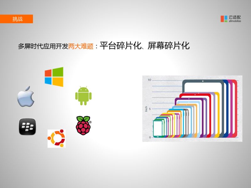 但在多屏互聯(lián)網(wǎng)時(shí)代,開發(fā)應(yīng)用將會(huì)面臨兩個(gè)非常頭疼的問題。一個(gè)是屏幕碎片化,一個(gè)是平臺(tái)碎片化。