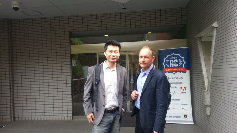在這里分享一張我和互聯(lián)網(wǎng)發(fā)明人TBL的合影,這是我們?cè)谌毡居懻揌TML互聯(lián)網(wǎng)標(biāo)準(zhǔn)開會(huì)的照片。他發(fā)明了互聯(lián)網(wǎng)技術(shù),設(shè)計(jì)了世界上第一個(gè)瀏覽器,設(shè)計(jì)了HTML開發(fā)語言。