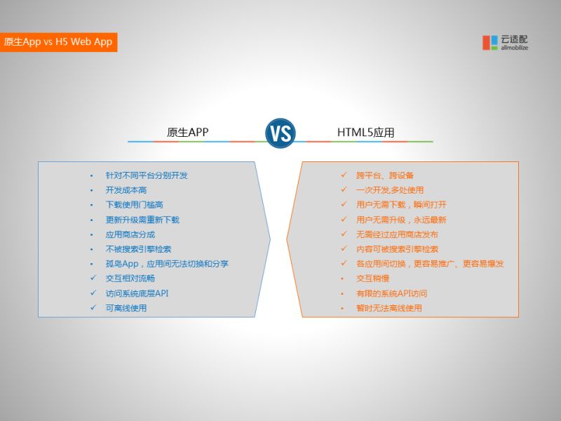 我們來對(duì)比一下HTML和原生APP的優(yōu)缺點(diǎn):