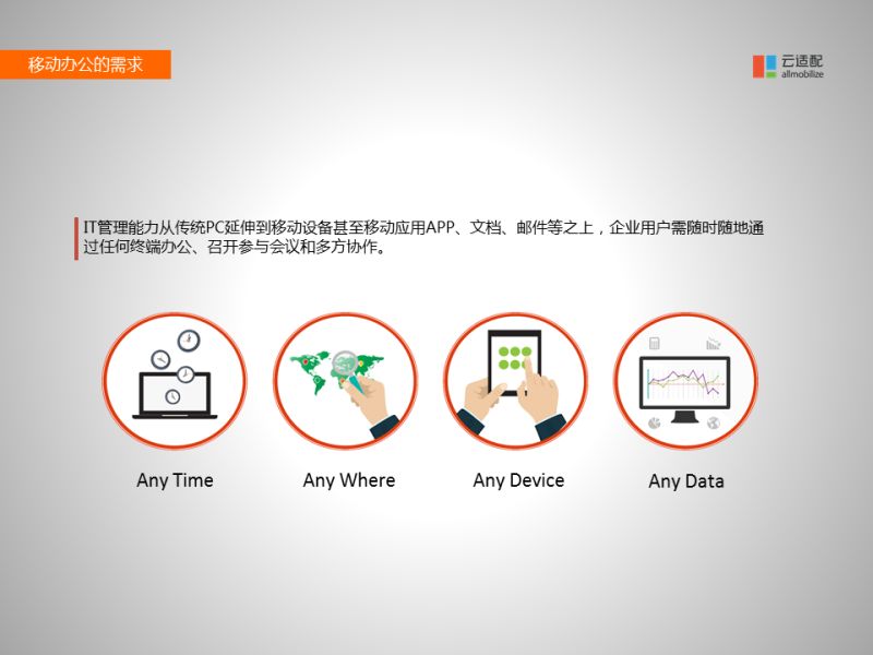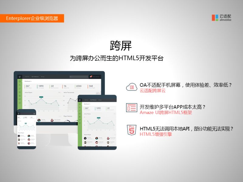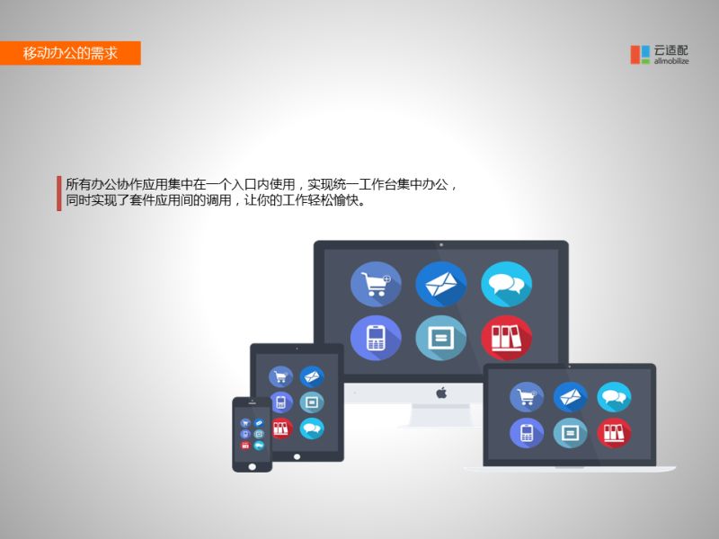 剛才主要講的是對(duì)外網(wǎng)站的跨屏產(chǎn)品。接下來講一下對(duì)移動(dòng)辦公系統(tǒng)的相關(guān)產(chǎn)品。