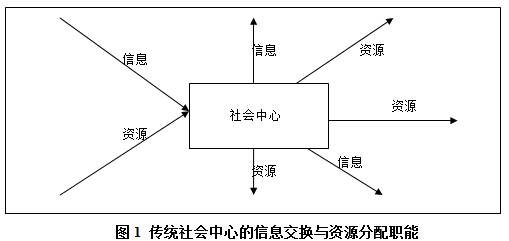 在傳統(tǒng)社會中,政府主要發(fā)揮三個層面的職能,對外職能包括保護(hù)領(lǐng)土與主權(quán)完整,國家資源安全等;對內(nèi)包括兩個層面,一是對個體最基本的保護(hù)如社會福利等;二是重要的內(nèi)容即調(diào)節(jié)整個社會的信息交換與資源分配,一方面,政府通過建立公共服務(wù)機(jī)構(gòu)促進(jìn)個體之間的信息與資源交換,如通信,物流手段;另一方面,政府通過各種政策將社會中的資源收集上來,再通過自身掌握的信息,給予重新二次分配[5],使得整個社會的資源利用效率提高。這就是傳統(tǒng)政府主要的任務(wù)與職能[6]。