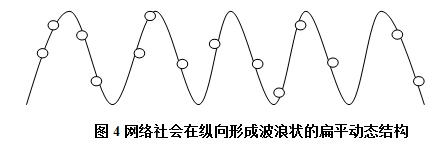 網(wǎng)絡(luò)社會在縱向結(jié)構(gòu)中的扁平化還具有的特征是,這種扁平化結(jié)構(gòu),本身也是處于高度變動之中的:由于網(wǎng)絡(luò)社會中的信息和能量具有高度的流動性,在某一時刻某些節(jié)點可能由于信息、能量更高從而具有相對較高的權(quán)力位置,但是很快會由于信息與能量的流動從較高的權(quán)力位置跌落,因此,整個網(wǎng)絡(luò)社會更像呈現(xiàn)出波浪起伏的結(jié)構(gòu)。整體上呈現(xiàn)出水平狀,而在局部由于能量與信息的聚集消散而形成權(quán)力位置的漲落。