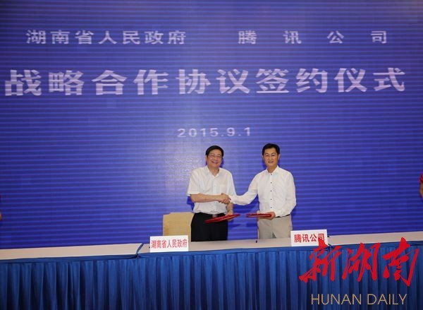 2015年4月29日,騰訊分別與長(zhǎng)沙、湘西、益陽(yáng)三市州簽署互聯(lián)網(wǎng)+戰(zhàn)略框架合作協(xié)議。