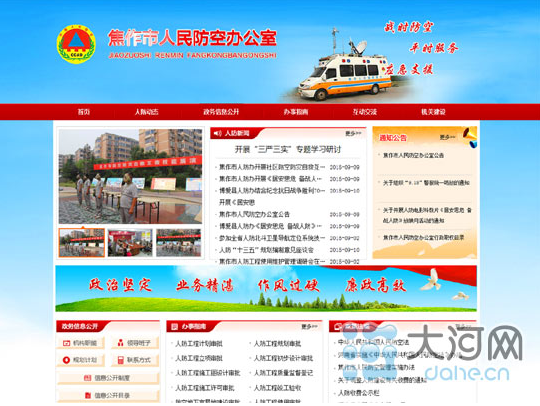 2015年9月10日,焦作人防辦新版網(wǎng)站如期上線。此次改版在頁(yè)面設(shè)計(jì)方面采用更為清晰合理的結(jié)構(gòu)布局和更適合人防形象的配色方案,整體視覺效果煥然一新。