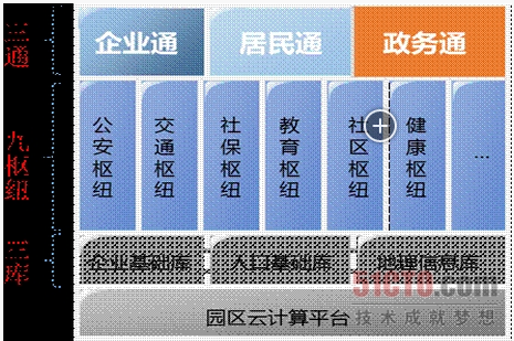 蘇州工業(yè)園區(qū)在“十二五”信息化發(fā)展規(guī)劃中提出了園區(qū)“三庫、三通、九樞紐”的信息化總體發(fā)展框架。