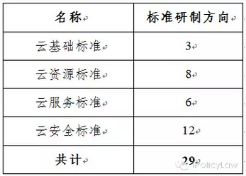 以云計(jì)算綜合標(biāo)準(zhǔn)化體系框架為基礎(chǔ),通過研究分析信息技術(shù)和通信領(lǐng)域已有標(biāo)準(zhǔn),提出現(xiàn)有標(biāo)準(zhǔn)缺失的,并能直接反映云計(jì)算特征,有效解決應(yīng)用和數(shù)據(jù)遷移、服務(wù)質(zhì)量保證、供應(yīng)商綁定、信息安全和隱私保護(hù)等問題的29個(gè)標(biāo)準(zhǔn)研制方向(如表1,詳見附件2),以指導(dǎo)具體標(biāo)準(zhǔn)的立項(xiàng)和制定。對尚未納入標(biāo)準(zhǔn)研制方向但在云計(jì)算綜合標(biāo)準(zhǔn)化體系框架中列出的,統(tǒng)一作為標(biāo)準(zhǔn)化需求研究方向。