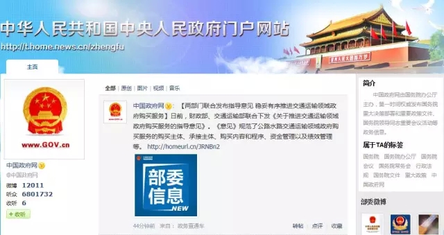 2013年10月開始,國務院官方微博分別在新華微博、人民微博、騰訊微博、新浪微博四大主體微博平臺上線,官方微信也同期推出,成為發(fā)布國務院領導同志政務活動信息、國務院重要會議信息、國務院和國務院辦公廳公開發(fā)布的政策文件及解讀稿件等政務信息的新媒體渠道。微博微信的推出拉近了中南海和普通民眾的距離,進一步提升了政府的透明度和公信力。