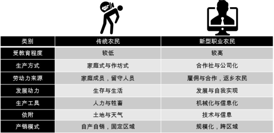 圖 7 傳統(tǒng)農(nóng)民與新型職業(yè)農(nóng)民的差異對比