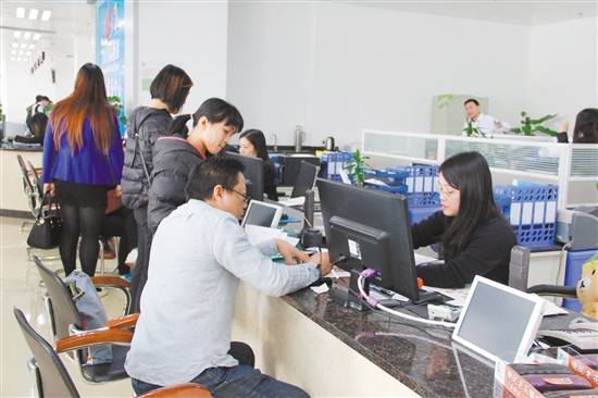 高新區(qū)綜合服務(wù)中心內(nèi),市民正在窗口辦理業(yè)務(wù)。