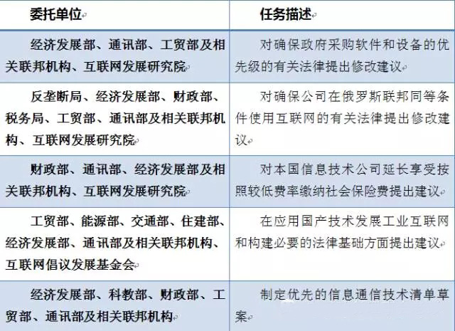 普京在首屆俄互聯(lián)網(wǎng)論壇上指出,考慮到全球網(wǎng)絡發(fā)展總趨勢,俄羅斯的互聯(lián)網(wǎng)發(fā)展需要做好長期發(fā)展戰(zhàn)略規(guī)劃。在對總趨勢做出判斷的同時,要尊重我們的合作和競爭伙伴,為互聯(lián)網(wǎng)市場的所有參與者提供統(tǒng)一的發(fā)展條件,并在不違反WTO框架協(xié)議的前提下,適當考慮對市場參與者提供優(yōu)惠措施。普京在論壇上簽署了關于構建俄羅斯互聯(lián)網(wǎng)經(jīng)濟的委托文件,具體包括16項委托任務。