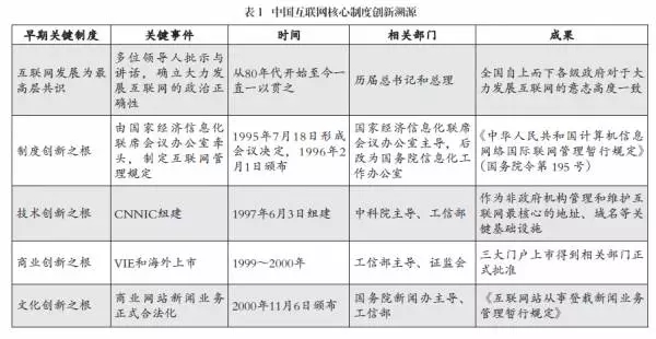 追溯概括中國互聯(lián)網(wǎng)20多年的發(fā)展史,如果說技術(shù)創(chuàng)新和商業(yè)創(chuàng)新是中國互聯(lián)網(wǎng)浪潮的兩個(gè)主旋律,制度層面的創(chuàng)新則是中國互聯(lián)網(wǎng)發(fā)展不可或缺的動(dòng)力因素。本文提出推動(dòng)中國互聯(lián)網(wǎng)發(fā)展的制度創(chuàng)新的兩個(gè)相互融合的研究角度。