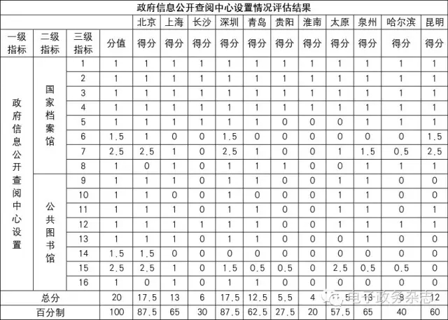 (二)政府信息公開查閱中心評估結果分析