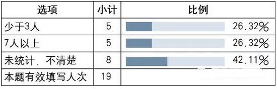 多于7人的,占比達到41.18%。明確回答少于3人,占比22.35%。介于3-6人之間的,有16個,比例達到18.82%。未統(tǒng)計占了17.65%。數(shù)據(jù)說明檔案館的利用率略微高過圖書館(參見表8)。