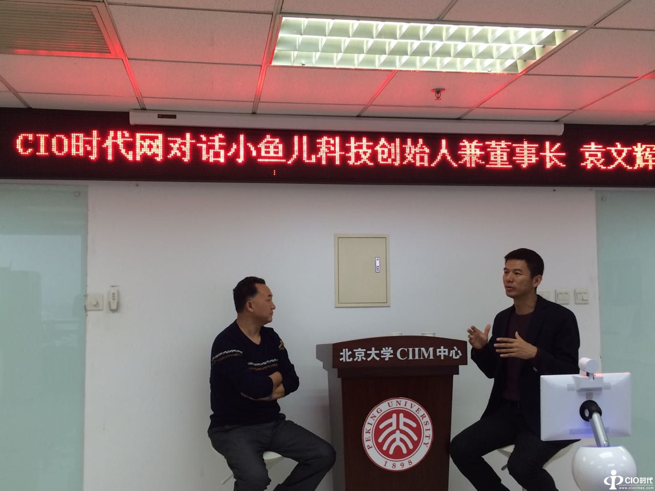 CIO時代網(wǎng)總編朱啟明(左)和小魚兒科技聯(lián)合創(chuàng)始人兼董事長袁文輝(右)