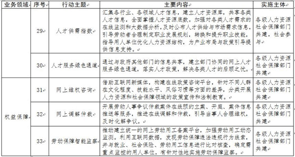 “互聯(lián)網(wǎng)+人社”2020行動計劃由基礎(chǔ)能力提升、管理服務(wù)創(chuàng)新和社會協(xié)作發(fā)展三項行動計劃組成,共包括48個行動主題(見附件)。