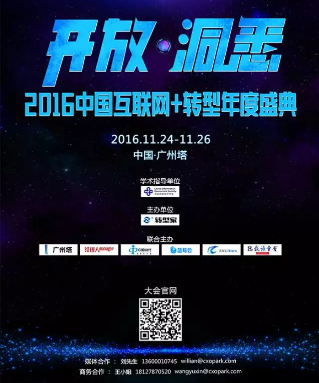 無論處于任何一個(gè)時(shí)代,挑戰(zhàn)與機(jī)遇總是在企業(yè)的發(fā)展中相生相隨。新形勢(shì)下面臨的新問題,敦促著企業(yè)必須努力尋找新的解決途徑。在這一時(shí)代背景下,由轉(zhuǎn)型家主辦,廣州塔、經(jīng)理人、CIO時(shí)代信息化學(xué)院、藍(lán)莓會(huì)、天英匯、總裁讀書會(huì)聯(lián)合主辦的“2016年中國(guó)互聯(lián)網(wǎng)+轉(zhuǎn)型年度盛典”即將于11月24日至26日在廣州塔舉行。
