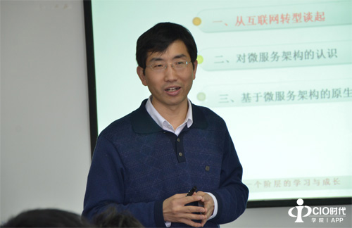 接著,CIO時(shí)代學(xué)院院長(zhǎng)、中國(guó)新一代IT產(chǎn)業(yè)推進(jìn)聯(lián)盟秘書長(zhǎng)姚樂博士做了題為“微服務(wù)架構(gòu)與原生云應(yīng)用”的主題演講。他從互聯(lián)網(wǎng)轉(zhuǎn)型、微服務(wù)架構(gòu)以及基于微服務(wù)架構(gòu)的原生云應(yīng)用三個(gè)話題展開講解。他在演講中提到的互聯(lián)網(wǎng)轉(zhuǎn)型是從以職能為中心轉(zhuǎn)向以用戶為中心,從流程驅(qū)動(dòng)轉(zhuǎn)向數(shù)據(jù)驅(qū)動(dòng),從封閉系統(tǒng)轉(zhuǎn)向開放系統(tǒng),從中心化治理轉(zhuǎn)向去中心化自治等。他以GE的工業(yè)互聯(lián)網(wǎng)平臺(tái)Predix為例講解了云計(jì)算與大數(shù)據(jù)基礎(chǔ)平臺(tái)以及微服務(wù)架構(gòu)的原生云應(yīng)用。他提到微服務(wù)是細(xì)粒度的獨(dú)立的服務(wù),可以通過容器化部署實(shí)現(xiàn)彈性擴(kuò)展。相對(duì)于SOA,微服務(wù)具備獨(dú)立部署、快速迭代、持續(xù)交付和去中心化自治等典型特征。談到原生云應(yīng)用,他說原生云應(yīng)用天生就是彈性可擴(kuò)展的、可自我迭代的應(yīng)用,且適應(yīng)互聯(lián)網(wǎng)模式下隨時(shí)被調(diào)用、隨時(shí)支持高并發(fā)的需求。并且從方法、組織、技術(shù)等方面闡述了如何做好原生云應(yīng)用。整個(gè)分享環(huán)環(huán)相扣、條理清晰,贏得現(xiàn)場(chǎng)嘉賓們的贊許與掌聲。