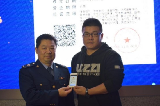 陜西省工商局王吉德局長頒發(fā)首張微信版電子營業(yè)執(zhí)照
