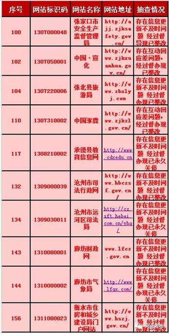 河北省2017年第一季度政府網(wǎng)站抽查中發(fā)現(xiàn)問題網(wǎng)站名單