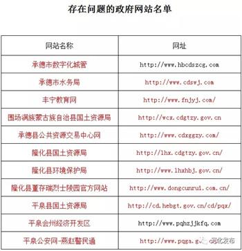 承德市人民政府辦公室關(guān)于對存在問題政府網(wǎng)站的公告