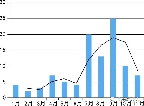 圖1 2016年1-11月全國熱點輿情事件發(fā)展趨勢(TOP100)